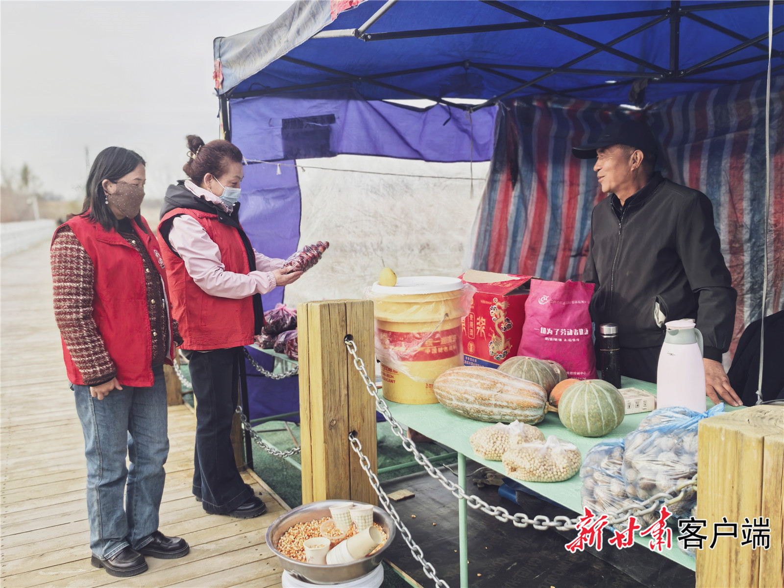 2025年11月,虽然还未到观赏天鹅的高峰期,但已有村民早早摆起了摊位,售卖起自家的农产品和手工艺品。