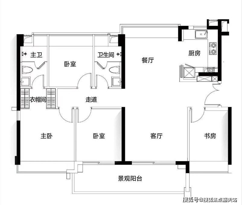户型布局合理,空间利用率高,四房设计,能满足二胎家庭或有老人同住的居住需求;门口书房可灵活改造,可作为老人房、儿童房或办公书房,适配不同家庭的需求;主卧面积约18㎡,带独立衣帽间与干湿分离卫浴,独立衣帽间能满足业主的衣物收纳需求,干湿分离卫浴则能提升使用的私密性与舒适度,让业主享受高品质的居住体验;三个次卧面积分别约12㎡、11㎡和10㎡,均能放下1.5米床+衣柜,空间充足,能满足家人的居住需求;餐厅与厨房紧密相连,厨房采用U型布局,操作空间充足,方便日常烹饪,同时配备明窗,通风效果好。