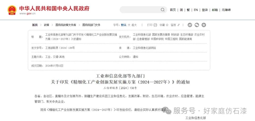 查看详情近日,工业和信息化部等九部门联合印发《精细化工产业创新发展实施方案(2024—2027 年)》,以 “绿色化、高端化、智能化” 为主线,为建筑涂料行业划定清...